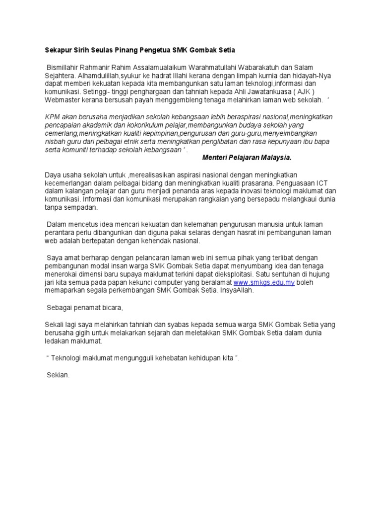 Alhamdulillah, syukur kepada allah yang maha kuasa kerana masih diberikan waktu dan kesempatan untuk terus memantapkan kelangsungan tugas sebagai pendidik. Saloma sekapur sireh seulas pinang. Belajarlah suatu adat istiadat dan budaya dan kenalkanlah kepada anak dan cucu kita Saloma sekapur sireh seulas pinang. Bismillahi rahmanir rahim assalamualaikum sejahtera.
